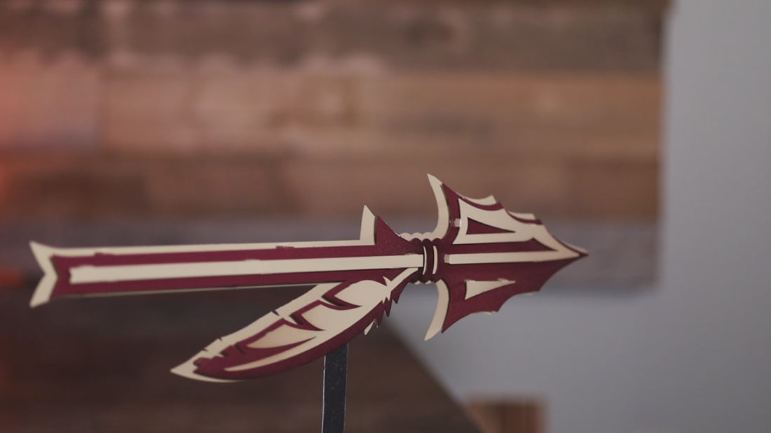 The 3D layered vintage look of this piece is amazing and something you can only find at Hex Head. Made of aluminum, so it is great for indoor use or outdoors (won't rust) and hand painted with automotive candy finishes and clear coat. Each piece has a hand painted TEXTURED finish matched to your team’s PMS color code with candy fades for our signature Hex Head look. Even the white we use is treated with a very slight oil rubbed bronze fade on pinpointed edges for that perfect vintage look.