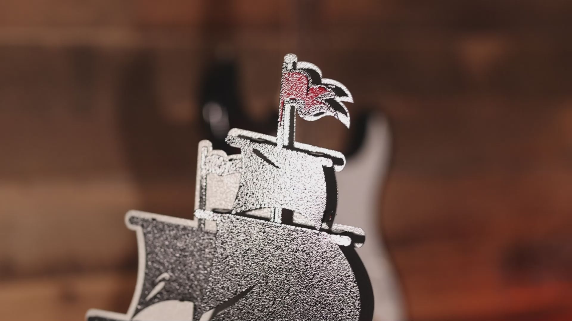 The 3D layered vintage look of this piece is amazing and something you can only find at Hex Head. Made of aluminum, so it is great for indoor use or outdoors (won't rust) and hand painted with automotive candy finishes and clear coat. Each piece has a hand painted TEXTURED finish matched to your team’s PMS color code with candy fades for our signature Hex Head look. Even the white we use is treated with a very slight oil rubbed bronze fade on pinpointed edges for that perfect vintage look.