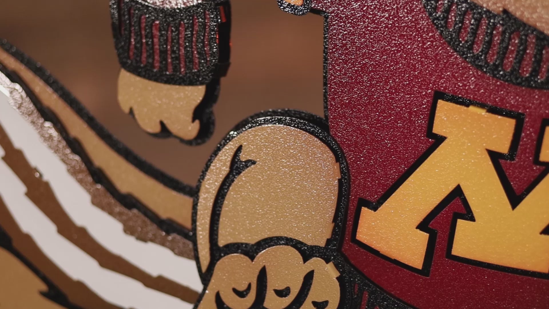 The 3D layered vintage look of this piece is amazing and something you can only find at Hex Head. Made of aluminum, so it is great for indoor use or outdoors (won't rust) and hand painted with automotive candy finishes and clear coat. Each piece has a hand painted TEXTURED finish matched to your team’s PMS color code with candy fades for our signature Hex Head look. Even the white we use is treated with a very slight oil rubbed bronze fade on pinpointed edges for that perfect vintage look.